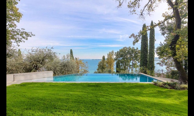 The house overlooks the lake, facing the "Lido di Padenghe" beach, with a private infinity pool with breathtaking views.