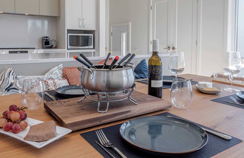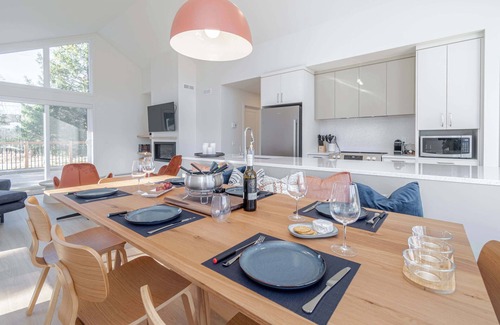 This villa boasts a private spa available year-round, ideal for relaxing in any season. An indoor propane fireplace adds a cozy ambiance, while a ping-pong table and board games provide entertainment. A BBQ is also available from May to October, perfect for seasonal grilling.