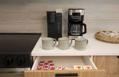 Spend your days sunbathing, paddle boarding, or exploring nearby trails. In the evening, take a quick bike ride down to Celebration Park, where food trucks, live music, and waterfront drinks await.