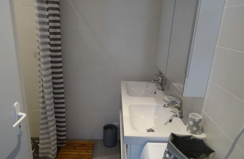2 bedrooms (1 bed 140x200 in each bedroom + 1 bed 90x190 in the second bedroom) with duvets 220x240 and 140x200; for baby, a cot and high chair available; bathroom with shower and washing machine, double sink; Separate WC. Linen not provided.