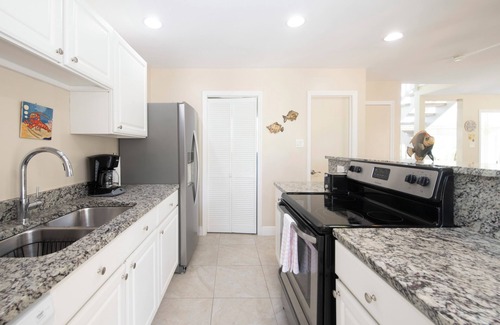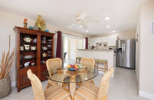 Tropical trees and shrubs step off the backdoor lead to the shared pool and boat dock where you can launch one of the three kayaks (2 tandem, 1 single) provided during your stay. The pool and dock are just 100 feet from the backdoor. Adventure seekers will want to explore the cove (also known as Bioluminescent Bay) at night to watch the waters glow under the stars.