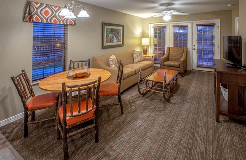 Make a meal in your fully-equipped KITCHEN that includes a full-sized fridge, a microwave, a coffee maker, and complimentary coffee and tea supplies. When you don't feel like cooking, enjoy a meal at the restaurant located on our 18-hole golf course, Grille on the Green or grab a snack at The Snack Bar.