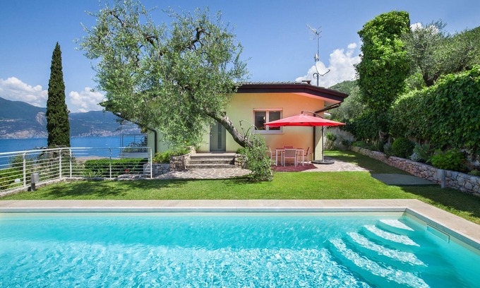 Villa Palladini is located in Pai di Torri del Benaco in a panoramic area surrounded by olive trees. The Villa is easily reached along the Via Gardesana and is located about 5 km from Torri del Benaco.The Villa is located within a private context of villas which is accessed through an electric gate and is about 100 meters from the lake and the beaches. Entering from the driveway gate you follow the road that will take you directly to the private parking area, The villa is equipped with a garage and one parking place.In the small village of Pai there are several restaurants and pizzerias within walking distance and also a small shop for basic groceries.The villa is on two floors and was renovated in 2022.FIRST FLOOR - LIVING AREACrossing the pedestrian gate and following some steps you will come into direct contact with the outdoor spaces of the Villa. You will immediately enjoy tranquillity and a large olive tree will greet you. Next to the entrance, there is an outdoor dining table with an umbrella, to meet you and spend unforgettable moments together. The view is over the private unheated pool, with comfortable access steps and an outdoor solar shower. To complete the exterior a large solarium area with sun loungers with a spectacular 180-degree view of Lake Garda. Upon entering the house you will find the air-conditioned living area with an indoor dining table for six people. A living room with a large sofa, from which to enjoy the lake view thanks to the large window that gives access to the terrace. Here you will find a table to sip your first-morning coffee and a rocking chair to relax at sunset. The kitchen is separate and open to the living room. Equipped with a refrigerator and freezer, gas stove, oven, dishwasher and all the necessary accessories to prepare lunches and dinners for your family vacation. On this floor, you will find the first bedroom equipped with air conditioning, with a large double bed, a built-in wardrobe and a window overlooking the garden behind the house. A bathroom with a glass shower completes this floor. GROUND FLOOR - BEDROOMS A staircase with a glass parapet leads to the ground floor where you will find a living room with Smart TV and satellite channels. A French bed occupies the centre of the room and is ideal for children to sleep. The corridor leads to the second bedroom with two single beds and panoramic French windows with direct access to the garden with two comfortable sun loungers, for those who love tranquillity. The room is air-conditioned.On this floor, we have a full bathroom with a large shower and a laundry room with a comfortable dining room and washing machine. THE AREALake Garda, located in northern Italy, is a holiday destination throughout the year.Guests can swim, surf or sail in the waters of the largest lake in Italy.Many guests also take advantage of our beautiful mountains for hiking and cycling or using the rotating cable car that leads to Monte Baldo. The Gardaland Resort and other theme parks are about 20 km away. Verona is 45 km away and Venice is 170 km away. CONTACTLESS CHECK-INGuests will find the keys at the house and Domur Rental srl will send you all the information you need to arrive and 24/7 assistance is offered.C.I. 023086-LOC-00509. CIN.IT023086B4YPCOC2RV