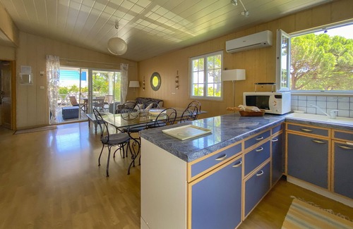 Ideally located on the commune of Gassin , 5 kms away from St Tropez and its famous beach Pampelonne, just five minutes away from the beaches of Gassin and Cogolin , Parc OASIS is an enclosed field with an entrance barrier , raised with umbrella pines .It's the best place for a quiet and pleasant stay with your family , so close to the Mediterranean sea !The wooden villa of 60m2 will welcome you any season ! You'll relax on one of the two terraces of 10 and 15m2 with garden furnitures and two sunbathings.