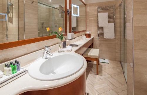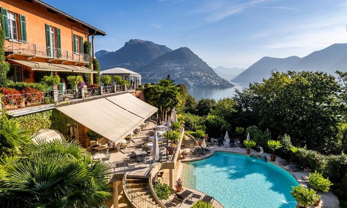 Villa Principe Leopoldo can be found amid a large park above Lugano, offering panoramic views of Lake Lugano and the mountains, and featuring leisure, sport and wellness facilities, as well as exquisite dining options. WiFi is available for free. A Member of Relais & Chateaux, Villa Principe Leopoldo is a harmonious blend of Italian charm and Swiss excellence. The historical villa, once a prince's residence, provides views of the lake and the garden, and the nearby park The DOT SPA offers a relaxing ambiance made with personalized treatments based on the Villa Principe's own top-quality cosmetic line. Hot tub, sauna and steam bath facilities are also featured. The Principe Leopoldo Restaurant received excellent reviews in the most important international guides. The Piano Bar & Lounge offers an exclusive selection of cocktails and wines, champagne and malt whiskeys, all accompanied by live music. The spacious and stylishly decorated guest rooms are all air-conditioned. Bathrobes and slippers can be found in the luxurious bathrooms. Villa Principe Leopoldo is 1.2 mi from the city center of Lugano. Private outdoor parking is available on site for free. Garage parking is possible at an additional cost. A charging station for electric and Tesla vehicles is available on site.