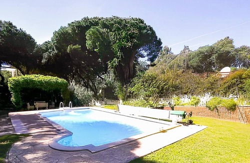 Villa with private pool in Chiclana de la frontera for families and couples only. Located in an excellent area, the villa guarantees maximum privacy and tranquility for an unforgettable holiday. The holiday home consists of a living room with a fireplace and a sofa bed, a dining room, a well equipped kitchen with all the necessary amenities, 3 bedrooms (1 of them with 1 double bed, the 2 others with 2 single beds each), as well as 1 bathroom, so it can accommodate up to 7 people. Additional amenities include washing machine and television.In the outdoor area of the property, you will find an outdoor pool where you can relax and cool off in the sun. On the open terrace you can spend hours relaxing with your loved ones. In addition, there is a beautiful covered dining area outside where you can dine together on the table overlooking the garden with lawn and pine and fruit trees. Prepare a delicious barbecue dinner with local ingredients and enjoy it.The centre of Chiclana de la Frontera, with a fantastic range of shops, restaurants, bars and cafés, is around 11 minutes' drive away. In addition, the beautiful coast of the region, with beaches such as Playa de Sancti Petri, Playa Punta de Piedras and Playa de La Barrosa, awaits your visit to about 21 minutes by car from its front door. Pets are allowed (on request). There are free parking spaces inside and outside the property. HOUSE POLITICSWe only accept families and couples.*Persons additional to those included in the reservation in the property are prohibited (an extra supplement will be paid in case of additional person). No parties or events of any kind are allowed. Failure to comply with these rules will result in non-refundation of the deposit and cancellation of the reservation. *Please note that the property must be clean and tidy at the time of departure, especially when it comes to dishes (which must be washed and put in place) and garbage (which must be taken out). If this is not the case, there will be an additional cleaning fee.Children under 5 years stay free of charge with existing beds.No parties, no loud music during rest hours.