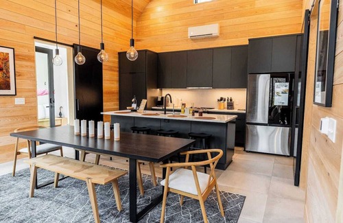Introducing Villa Rock at Hugga In the Hills. Our pet free, Scandinavian inspired villa nestled within the heart of the Hocking Hills. Sprawling over 42 acres of private landscape, this is more than a getaway—it's an experience of outdoor living. Just a leisurely 3-4 miles from Cedar Falls and the storied Old Man's Cave, you're perfectly positioned to explore the natural wonders that define the Hocking Hills.
