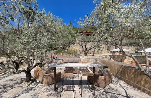 Embrace an extraordinary holiday experience in the heart of the Luberon, just steps away from the Provençal Colorado of Rustrel and numerous scenic hiking trails. This residence offers a distinctive retreat in a wooded, natural setting, boasting exquisite lounging spaces—an idyllic haven for multiple families or friends. Elevate your vacation with the allure of uncommon beauty and tranquility, making this property an exceptional choice for a getaway that transcends the ordinary. Immerse yourself in the charm of the Luberon region, where every moment becomes a cherished memory.