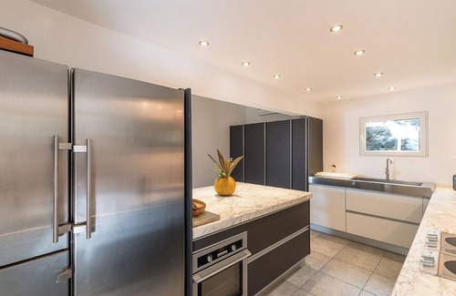 Villa SKRUTTEN consists of four air-conditioned bedrooms spread across the property. The two master bedrooms are on the main level on either side of the living room, and feature HDTVs and en-suite bathrooms. On the lower level, the other two bedrooms share the same bathroom, a small lounge and a private terrace, perfect for a family with children. You'll be charmed by the romantic décor and the serene atmosphere with cushions and colorful artworks.