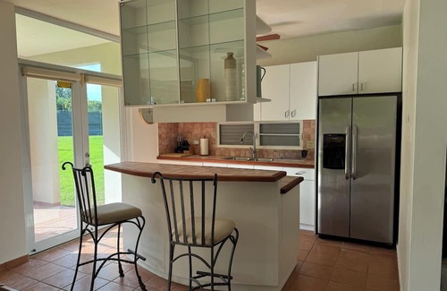 Villa Sol is situated within the exclusive North Coast Village Resort, 24hr security . just a 5 minute ride from the Ritz-Carlton Hotel and beaches. Enjoy exclusive use of the 3 swimming pools featuring a water slide , tennis court, expansive walkway, and 3-bedroom, 2.5 bathroom house. Master en-suite with king, full over full over full sized bunk bed , and guest room with king size bed parking for two cars are included for your convenience