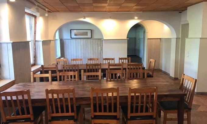 The villa has 9 bedrooms and 6 group rooms. In a large kitchen, cooking together becomes an unforgettable experience. The garden, which is over 4000 square meters in size, offers a wide range of activities. In the adjacent building there is a sauna and three spacious meeting rooms for seminars and courses. Freshly renovated, the property offers the ideal location for groups of 12-30 people for family reunions, multi-generational holidays, family celebrations, conferences and cycling holidays for children and young people. Only 30 minutes by car from Berlin!