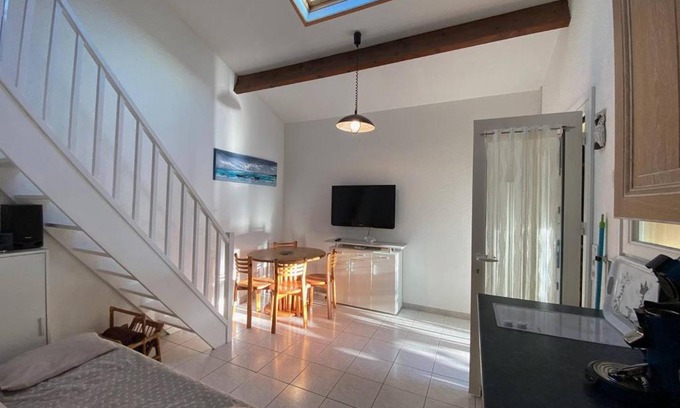Villa T2, 6 pers avec Terrasse & Clim, Proche Plage à Port Leucate - FR-1-81-576 offers accommodations in Port Leucate, a 6-minute walk from Port Leucate Beach and 16 miles from Stade Gilbert Brutus. This property offers access to a terrace and free private parking. Collioure Royal Castle is 30 miles away and Circus Casino de Port Leucate is 1.2 miles from the villa. The air-conditioned villa is composed of 2 separate bedrooms, a living room, a fully equipped kitchen with a dishwasher and oven, and 1 bathroom. A TV is offered. For added privacy, the accommodation features a private entrance. Reserve Africaine de Sigean is 20 miles from the villa, while Abbaye de Fontfroide is 29 miles from the property. Perpignan - Rivesaltes Airport is 17 miles away.