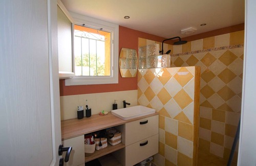 It consists of an air-conditioned main room with fully equipped kitchen (fridge, oven, ceramic hob, microwave, dishwasher, filter coffee makers and dolce gusto), living room opening onto a covered terrace with garden furniture, 3 bedrooms one with a double bed 140, the second with a double bed 160 and the third with 2 single beds 90. Shower room and separate WC.