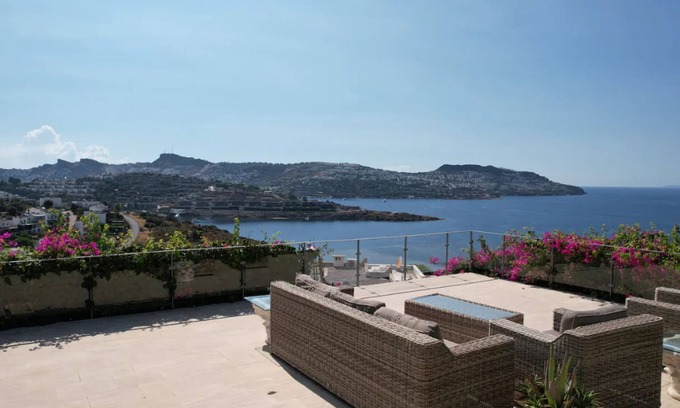 Villa w Sea View Terrace 5 min to Beach in Bodrum is located in Gundogan. Villa w Sea View Terrace 5 min to Beach in Bodrum provides accommodation, featuring Fireplace/Heating, Child Friendly, Balcony/Terrace, among other amenities. This Villa features Fireplace/Heating, Child Friendly, Balcony/Terrace, to make your stay a comfortable one.