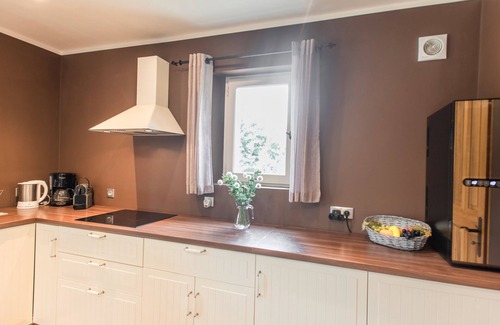 Ground floor: (open kitchen(electric kettle, toaster, hood, coffee machine(cups), oven, microwave, dishwasher, fridge-freezer, washing machine), Living/diningroom(TV(flatscreen), dining table(6 persons), stove(Pellet), seating area, DVD player, wireless music system, air conditioning))