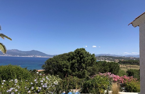 100 sqm villa, newly renovated, with garden and palm, without any vis-à-vis, located in a cul de sac, panoramic views of the Gulf of Ajaccio, the Sanguinaires and the peninsula of isolella but also of the mountains .