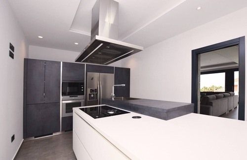 The house comprises three floors. The semi-basement is accessed via large garage doors which lead to covered, secure parking for two more cars. From here, you can access the games room, a large open-plan living room and fully equipped kitchen area with large island. The is also a dining area from where you can see underwater, directly into the swimming pool, like looking into a fish-tank, through large glass windows. For the energetic, there is a home gym here, too, with a variety of equipment to suit all training schedules. After exercise, you can enjoy the spa, jacuzzi, turkish bath or take a dip in the internal, covered pool, which has water jets throughout its entire length. There is also a fireplace for the winter days and, of course, a WC. The entire basement Spa area will be switched off during the months of June, July, August and September. It will only be switched on at the request of the client.