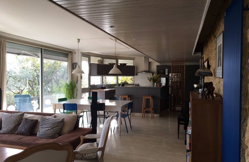 A 200m2 single-storey architect-designed house built in 1982 on a 7000m2 plot planted with olive trees, pines, oaks and Mediterranean massifs (lavender, rosemary etc.), with a beautiful view over the surrounding countryside.