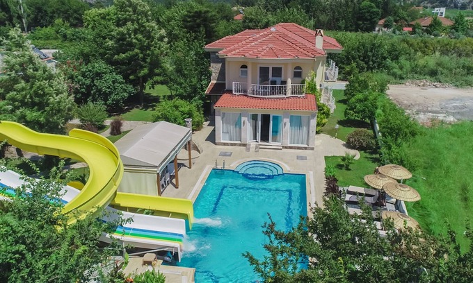 This villa is just amazing! The only villa in Dalyan with its own water park!! 2 fast water slides, private pool, 7 bedrooms, 7 bathrooms its perfect for families holidaying together.