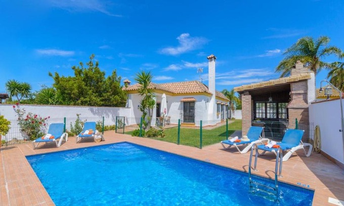 Featuring a garden, Villanueva - Casa 2 Conil Frontera by Ruralidays provides accommodations in Conil de la Frontera. This property offers a private pool, free Wifi, and free private parking. Club de Golf Campano is 2.1 miles away and Cortadura Fort is 20 miles from the vacation home. Providing a terrace with garden views, this vacation home also offers a TV, a well-equipped kitchen with a dishwasher, a microwave, and a toaster, as well as 1 bathroom with a shower. The accommodation has a fireplace. Guests can make the most of the warm weather with the property's barbecue facilities. Novo Sancti Petri Golf Club is 5.7 miles from the vacation home, while Genoves Park is 24 miles away. Jerez Airport is 35 miles from the property.