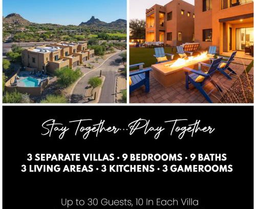 31 miles from Copper Square in Scottsdale, Villas 1, 2, 3 The Villas At Troon North features accommodations with access to a hot tub and spa center. The air-conditioned accommodation is 31 miles from Phoenix Convention Center. There's an outdoor fireplace and guests can use free Wifi and free private parking. The vacation home features 9 bedrooms, a fully equipped kitchen with a dishwasher and an oven, a washing machine, and 12 bathrooms with a hair dryer. Guests can take in the ambience of the surroundings from an outdoor dining area or keep warm by the fireplace on colder days. For added privacy, the accommodation features a private entrance. Guests can spend time in the water park or enjoy the outdoor swimming pool and garden at Villas 1, 2, 3 The Villas At Troon North. Troon North Golf Club is a 4-minute walk from the accommodation, while Musical Instrument Museum is 12 miles from the property. Scottsdale Airport is 11 miles away.