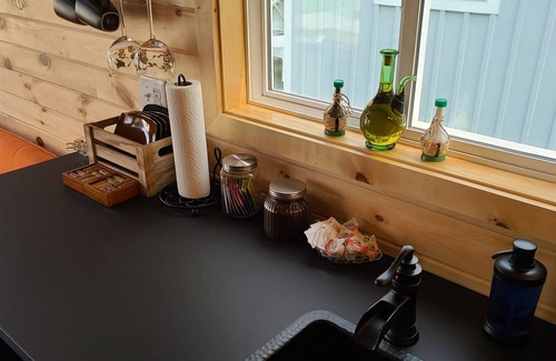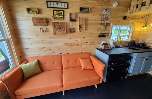Like all the other tiny houses at Tiny Digs, this tiny has everything you need for a comfortable stay like a kitchenette, electric heat, air-conditioning, a flush toilet, WIFI, and a hot shower plus luxury linens.