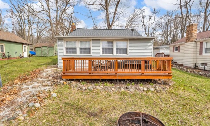This beautiful house in Brooklyn offers a tranquil escape for guests. With 2 cozy bedrooms featuring a queen bed and two twin bed, this fantastic property is the perfect retreat. Welcome to the Vineyard Lakeside Oasis. Enjoy the lake view and sandy beach with access to spring fed Vineyard Lake, less than 1 minute walk down the street with access to a beach! Irish Hills and surrounding area is also home to many golf courses and MIS. This lovely home offers outdoor dining and seating, AC, fire pit, a fully equipped kitchen, 3 comfy beds. Explore all that the Irish Hills has to offer - wineries, lakes!