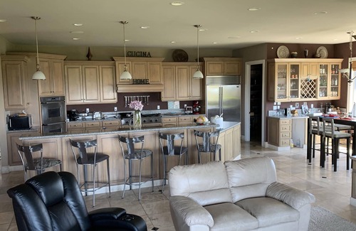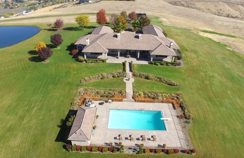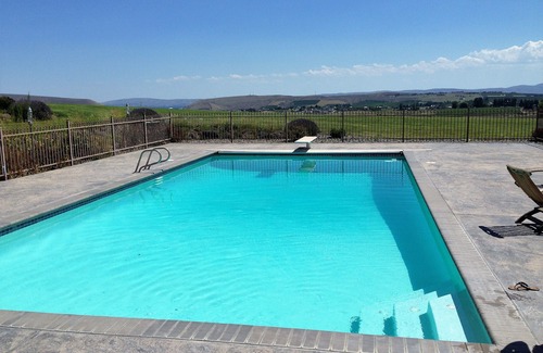 The Chateau sits on 30 private acres 600 feet above the City of Selah, with a 360 degree viewof the Valley plus Mt. Adams and Mt. Rainier. Relax by the pool or on the covered private patio, gaze across the orchards and vineyards as the sunsets. Bring your camera to take pictures of the breath taking scenery and sunsets. Then take a walk around the pond or hike the local trails, all this... only minutes from Town. Each Suite has its own private bath, walk in closet and picture window to take in the sweeping views, allowing just 2 Guests per suite. Each suite has a microwave, coffee pot, herbal teas, throw blanket and mini-fridge. There is a Dining-Room (Shared), Kitchen (Shared), Living room (Shared), Theater Room (Shared), Patio (Shared) 1 Pool (Shared) Wi-Fi. We have a full kitchen plus 3 outdoor BBQ if you would like to stay in to dine at the Chateau.