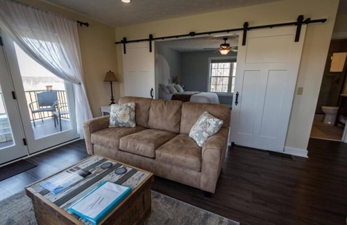 Located overlooking 40 acres of vineyard land, the four bedroom Vineyard Villa has the best views of the Grand River Valley wine region. The perfect size for three or four couples traveling together or a group of friends looking for a quiet getaway. Enjoy your time with the group at the fire pit adjacent to the Villa or take advantage of the privacy of the three separate living areas after a day at the nearby wineries.