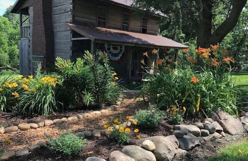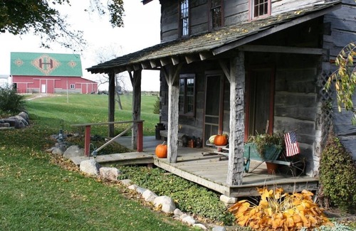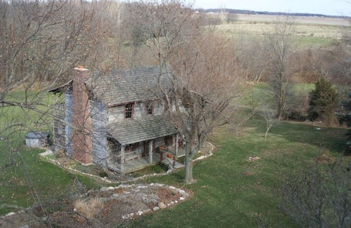 Enjoy our beautiful 1850 log cabin in the midst of our alpaca pastures. This authentic 1850's log cabin provides a comfortable retreat from your busy lifestyle and allows you access to a beautiful Midwest alpaca farm. The cabin has a large air conditioned sleeping room upstairs with 2 double beds and 2 twin beds. The downstairs space is NOT air conditioned, but fans are provided.