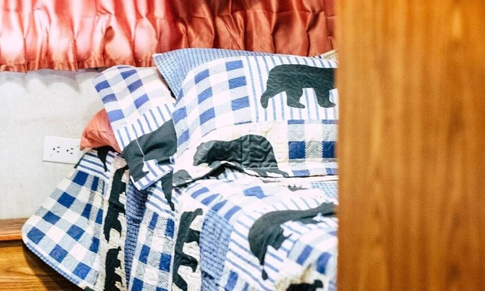 This Vintage Airstream Camper has a spacious living area with a queen futon. The back bedroom offers two twin beds. The camper exudes relaxation and comfort with an outdoor fire pit, gazebo, and picnic area. There is also a short walk path with a view of Potts Creek.