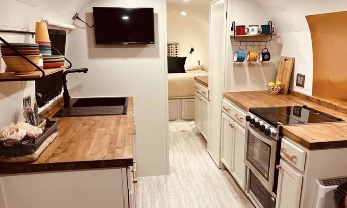Watch us build our lavender farm and stay in “Lost Inn Lavender”. Enjoy our restored, vintage Airstream. Enjoy a peaceful space surrounded by nature. The property hosts a boxing gym, swimming pool and hot tub, firepit and outdoor grill. Nestled in bucolic Bucks County, we are close to river tubing on the Delaware, Ringing Rocks, Peace Valley Park, Ralph Stover Park, Lake Nockamixon, New Hope, Lambertville, Frenchtown as well as Peddlers Village and Sand Castle Winery. Inside you will find a tastefully designed space that combines vintage aesthetics with contemporary amenities. The cozy living area invites you to relax and put your feet or enjoy playing one of our classic board games. The entire airstream is heated and air conditioned. The fully equipped kitchen has everything you will need to cook meals including a blender, toaster and Keurig coffee maker. The bathroom has a Nature's Head composting toliet, sink and shower along with plenty of towels. The bedroom has a Queen bed outfitted with 600 thread count linens. A flat panel TV allows you to stream your favorite movies in bed.