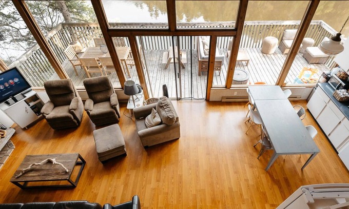 Enjoy the spacious great room, the wrap around deck and private lake access for the entirety of your stay.