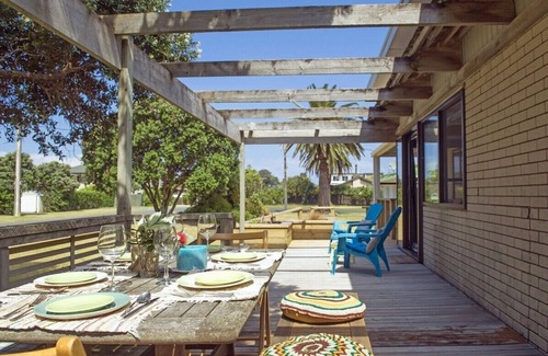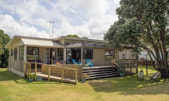This original 4-bedroom 1940s bach (one of the first in Whangamata!) with all the charm of real old Kiwi summer baches, and with plenty of living indoors and out. Low key, warm and friendly, it's been a magnet for families for over 35 years.