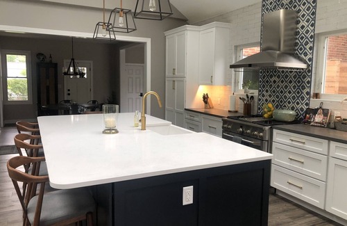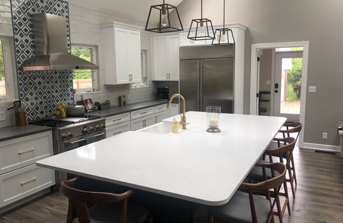 The first floor includes a large king bedroom with smart tv and cedar closet. Next is our full bathroom with tub/shower. Our dining room has seating for 6 and next to it is our cozy living room that has comfortable seating, a smart tv with cable and a view to our courtyard and pool. Next there is a large gourmet kitchen that includes an island with seating for 6 and a breakfast nook that can accommodate 7. This luxury, state-of-the art, spacious kitchen is truly a show piece and a great place to gather. A truly gourmet kitchen with top notch appliances lots of cabinets and counter space. Virtually everything you need has been thought of. Also, a fantastic server/bar cart and a Samsung, The Frame 55" tv with cable. Just off the kitchen is a large laundry room and powder room.