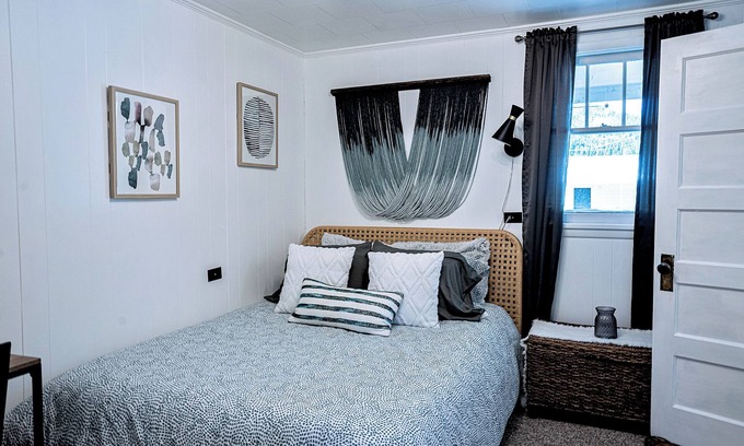 Take it easy at this unique and cozy getaway in Mullan, ID. Directly across the street from the Trail of the Coeur d'Alenes trailhead for biking. Centrally located from Wallace and Lookout Pass. very close to the Hiawatha Bike Trail. This 1 bedroom, 1 bath is perfect for a couple or solo traveler. Located in an early 1900's Vintage Motel. This Motel is under renovations, so don't judge a book by its cover. It is a fun and unique experience. Relax,bbq at our outdoor dining area beside the river.Your cozy getaway awaits in Mullan at this welcoming apartment. With 1 bedroom featuring a nice queen bed, it's the perfect space for a couple or solo guests. The bathroom offers a shower and a hair dryer for your convenience. Stay comfortable with heating and AC, and stay connected with WiFi. Whether you're exploring the charming city or simply relaxing indoors, this wonderful apartment is the ideal home base for your adventures. Enjoy your time in Mullan at our apartment.