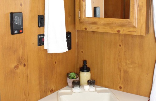 Please note that this is a travel trailer, so you will be clamping so to speak. The hot water tank is only 6 gallons, so conserving hot water is a must. But luckily since it's small it reheats within minutes. Even though the RV doesn't have all the amenities as a house, it's still very comfortable and cozy!