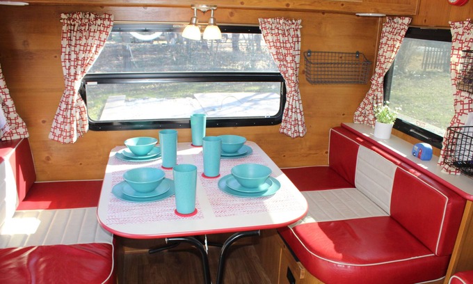 Our Vintage inspired 23 ft trailer offers a unique and comfortable stay, with a queen bed, sofa bed and table that turns into a bed. It's perfect for a family of 4 with 2 smaller children, or 4 adults, although it may be a tight fit. It's a great opportunity to experience all that Waco has to offer, in a truly one-of-a-kind setting. Book your stay today and make unforgettable memories with your loved ones.