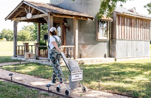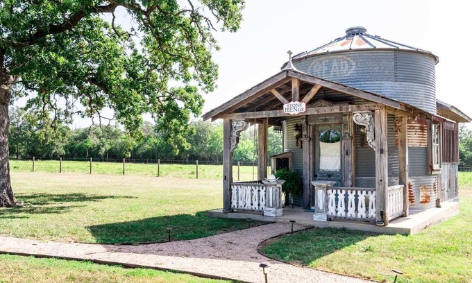 One of three unique cottages fashioned from vintage grain silos on 10 acres of land makes for a wonderful stay. Beautifully decorated with one-of-a-kind treasures. The cottages have been featured in at least 6 home decor magazines. The property is 8 miles from Round Top.