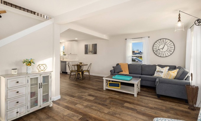 This beautifully renovated 3 bed, 2 bath, home-away-from-home accommodates up to six guests. Inside, you will want to cozy up to the gas fireplace with a cup of coffee, tea, or cocoa, or cook a gourmet meal in the fully-equipped kitchen. Find a relaxing retreat in the spacious primary suite, tucked away on the main floor, with a king bed and full bath. If a little work is on the agenda, you will be comfortable working from home in a private, modern home office with wifi. For larger groups, the home office easily converts to sleeping space for your 5th and 6th guest, with two twin size trundle style beds.