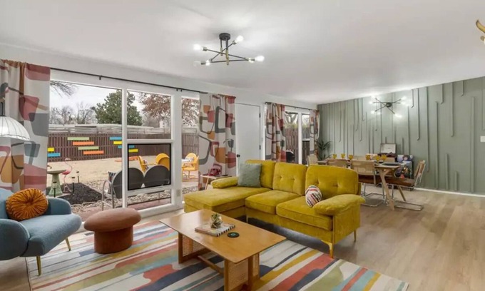Located in a Mid-Century neighborhood (Lortendale) the Vintage Vibes Getaway retains much of it's original 1950's feel, while being modernized at the same time. Offering bright colors, fun touches, an over-sized yard, immerse yourself in a blast from the past all while being minutes from Tulsa's top attractions. Designed by architect Donald Horn, the neighborhood is currently seeking national historic registry status. In summer months, (June-August) cool off in the neighborhood 5300 Club pool, at no extra cost! The daily dues the HOA charges are absorbed by your host for all 6 guests.