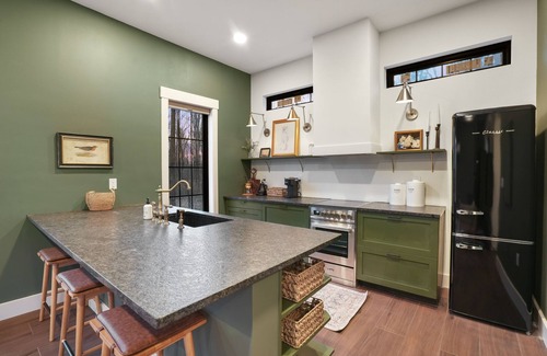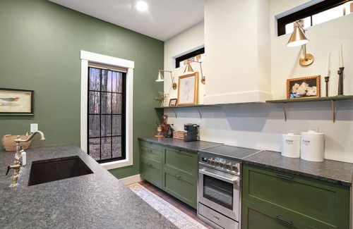 This unique place has a style all its own yet apart of Wilder's 10 properties on-site. Surrounded by lush greenery and tranquility, the cabin provides a serene retreat for those seeking a peaceful getaway. Step inside to discover an open-concept living space adorned with stylish, minimalist decor and large windows that allow natural light to flood the interior. The cozy living area is ideal for relaxation, featuring comfortable furnishings and a fireplace that adds a touch of warmth on cooler evenings. Must be 21 years or older to rent. Open Parking lot for all 10 cabins on site. Please note that parking is not available directly in front of your cabin. Wagon is provided to assist with luggage. 4WD/AWD is recommended in all seasons. No WiFi available.