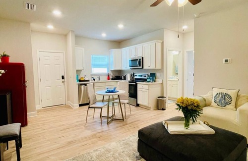 "This unit is located in a newly constructed duplex. It features a total of 1 bedrooms and 1 bathrooms in brand new duplex. Located in Windmark North Resort Community. There a lot of amenities in the village: Community Fire Pit on the beach, 2 pools, restaurants, SPA, coffee shop, gym and more. 1 bedrooms, 1 bathroom guest house located in the beautiful WindMark Community in Port St. Joe. Come enjoy being minutes from many different beaches. Fully loaded kitchen, smart tv, apple computer by request. Beach chairs, towels, bicycles. **RESORT STYLE POOL **Restaurants, coffeeshop- ice cream, pizzeria, bar, bike shop, small market in WindMark Village Center. The space Relax in our clean friendly home!. **The living room is ready with a fold out coffee table to play one of the many games provided or watch a movie on the tv.