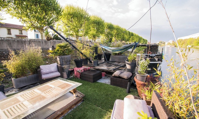 Nestled in Villeneuve-la-Garenne, this 3-bedroom, 2.5-bathroom houseboat brings it all within your reach. Fans of nature and the outdoors will love being within a 5-minute walk of Seine and 13 minutes by car from Canal Saint-Martin. You'll easily make the quick 4-minute drive to Stade de France or the 6-minute drive to Saint-Ouen Flea Market. Check out other neighborhoods and see more of Villeneuve-la-Garenne by hopping on a metro at either Mairie de Villeneuve-la-Garenne Tram Stop, a short 10-minute walk away, or L'Île-Saint-Denis Tram Stop, 12 minutes away.