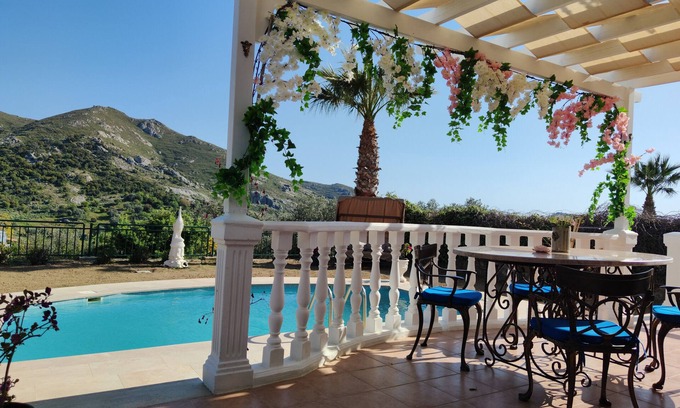 The Kamelya Vintage villa - This detached, newly updated, private, "boutique' characterful & spacious classic Turkish Ottoman style villa, on a gated with great amenities holiday complex, has just been all newly upgraded to a high standard of modern facilities, whilst still sympathetically retaining/restoring much of its classic style & unique character. Full air conditioning and Wi-Fi through out. Having your own private pool, all within your own wrap around enclosed gardens, with hillside, mountain n sea views, from all upper levels..especially great for families, friends & couples