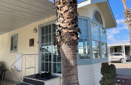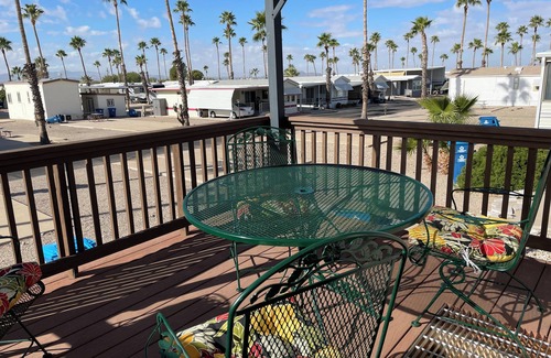 Our home is located at Voyager R.V. Resort, just east of Tucson. Voyager is a gated adult community with TONS of activities to enjoy. Guests are welcome to enjoy: 3 swimming pools, 2 hot tubs, pickleball courts, art & craft rooms, billiards, fitness center, 9 hole golf course, and so much more! The home is newly remodeled and features a bedroom with a comfortable queen bed, perfect for a soothing night's sleep. The best item....a raised back deck for a panoramic view of the amazing Arizona sunsets. A great place to vacation, or enjoy while working in Tucson. See: voyagerrv. com for more information.