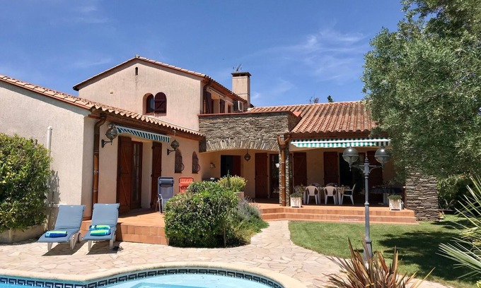 Belle villa avec piscine privée chauffée avec grand jardin située au village Laroque des Albères à 10km de la mer.