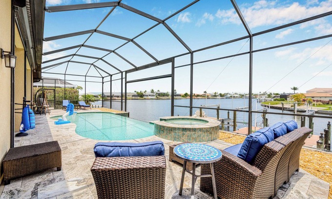 The villa's lanai offers a breathtaking view, ensuring plentiful sunshine for idyllic days of lounging by the pool or soaking in the spa. Bring your boat or rent one of ours to keep on your backyard dock. Enjoy world-class fishing or cruising on the sparkling gulf waters. Your perfect tropical vacation home awaits!