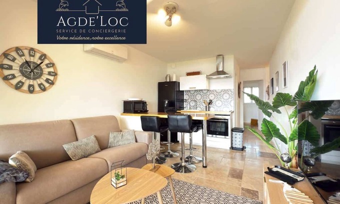 Agde’Loc Tamarissière – Profitez d’un séjour paisible dans ce T2 lumineux avec vue imprenable sur l’Hérault, à seulement 5 minutes à pied de la plage. Idéal pour jusqu’à 4 personnes, cet appartement tout confort vous accueille dans un cadre naturel exceptionnel entre pinède, dunes sauvages et ambiance fluviale.