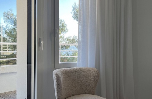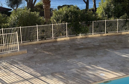 Vue mer Agay (Agay, Côte d'Azur, France) is a beautiful apartment with shared private pool and offers a unique panoramic view of the Estérel massif. This luxury apartment is quietly located in 1 of the most beautiful bays of the coast and within walking distance of beach and sea.The vacation apartment is located on the second floor of the building and is easily accessible by elevator (130cm deep and 81 cm wide). The apartment for 4 + 1 persons has a private sun terrace and a covered terrace where you can enjoy your breakfast, lunch or dinner at sunset.The open kitchen is fully equipped with an electric stove. The stylish dining and sitting room is tastefully decorated. The 2 bedrooms are bright and airy with fitted wardrobes. The bathroom with bath & shower is practical and modern.Apartment Vue mer Agay (Côte d'Azur, France) is part of a small residence and features a common fenced private pool (12x4m and depth 1.5m) and is open daily from 8am to 8pm. Thanks to the fence, it is very child-friendly. You can easily keep an eye on the little ones from the sun terrace, while you yourself enjoy a delicious pastis in the company of friends or family.This vacation apartment with sea view is located within walking distance from the charming village of Agay with its small port, sandy beach, numerous stores and typical cafes. There is a microclimate (the temperature never rises above 30 degrees and never below 5 degrees) where it is great to stay! The writer Saint-Exupéry crossed the Mediterranean from here and describes Agay as "a paradise where even the dust is perfumed...".Take a day trip from Agay to fashionable Saint-Tropez and Nice. Go on a private exploration of underwater fishing in the bay or take a boat trip to Cannes. Explore the Estérel massif along the numerous hiking trails or by mountain bike. Go horseback riding and admire this beautiful region.Vue mer Agay (Saint-Raphaël, Côte d'Azur, France) is one of the pearls of the French Riviera. A wonderful place to relax at the foot of the Estérel massif.